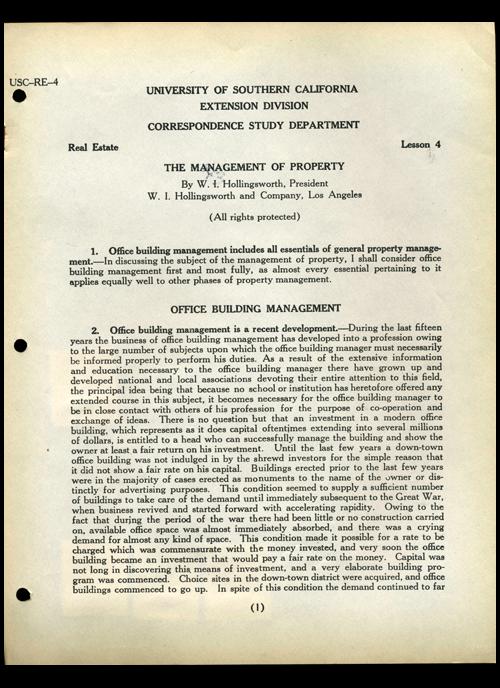 Scarce original collection page on the reverse of a real estate course manual; 4 scarce early pieces