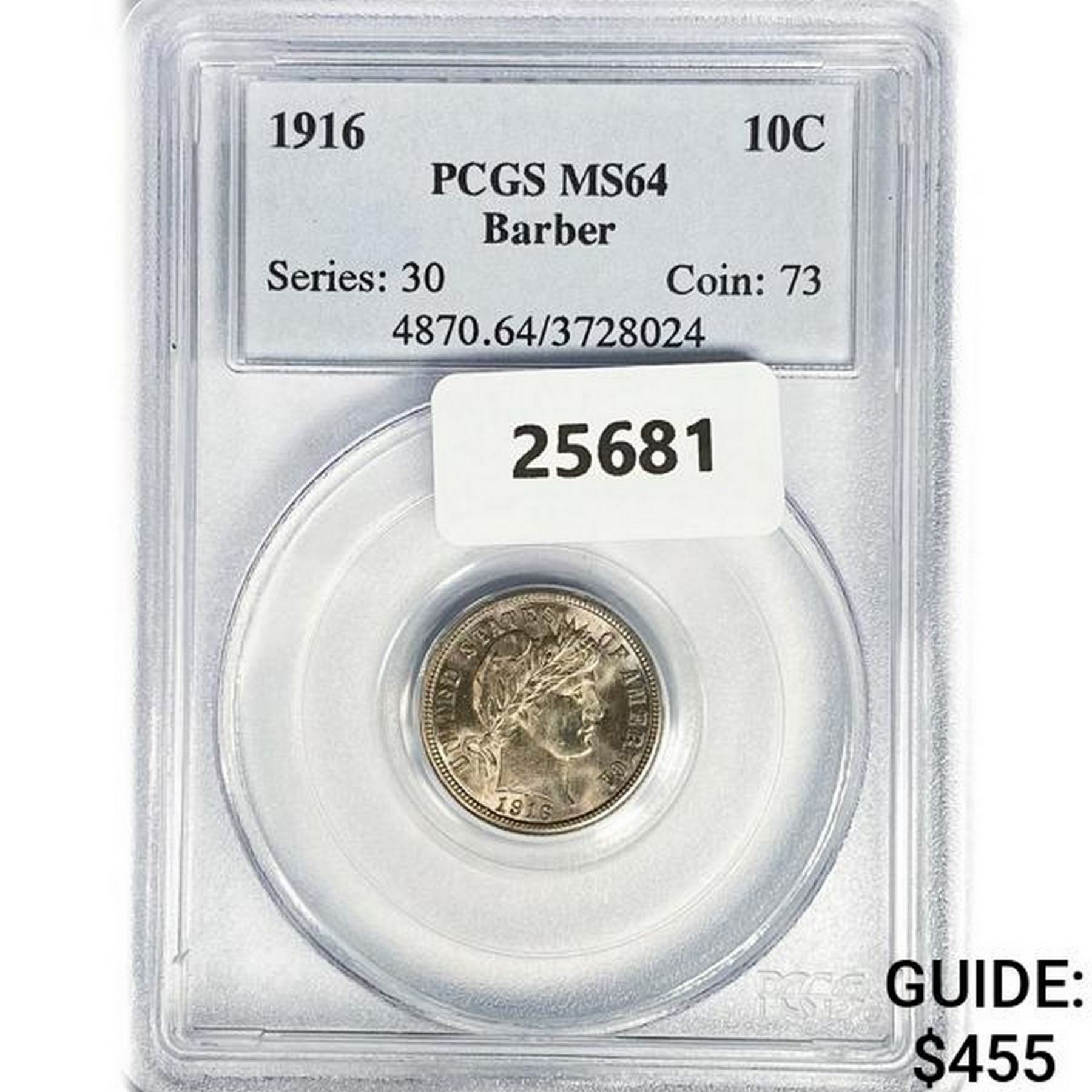 1916 Barber Dime PCGS MS64