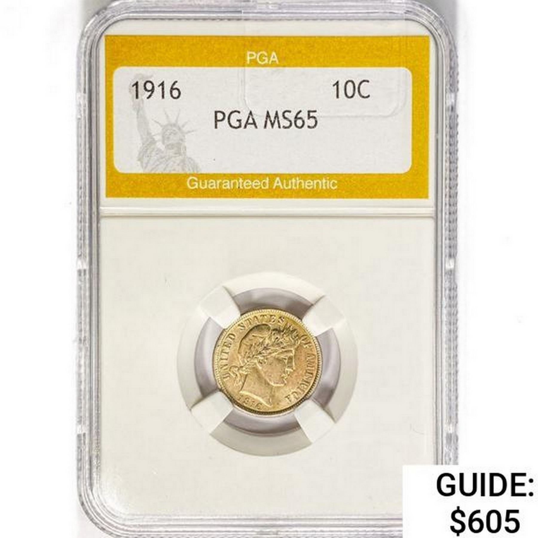 1916 Barber Dime PGA MS65