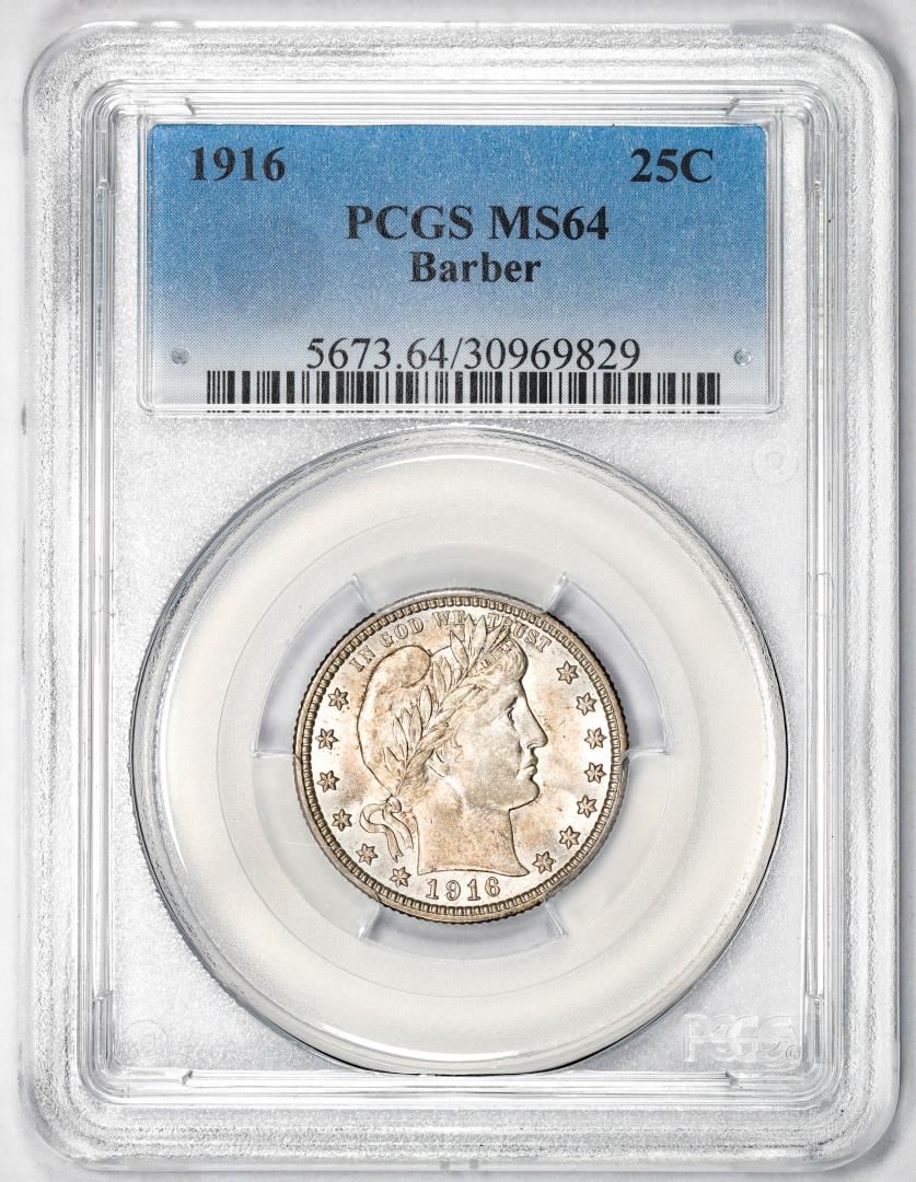 One 1916 Barber Quarter Coin PCGS MS64. PCGS Graded.