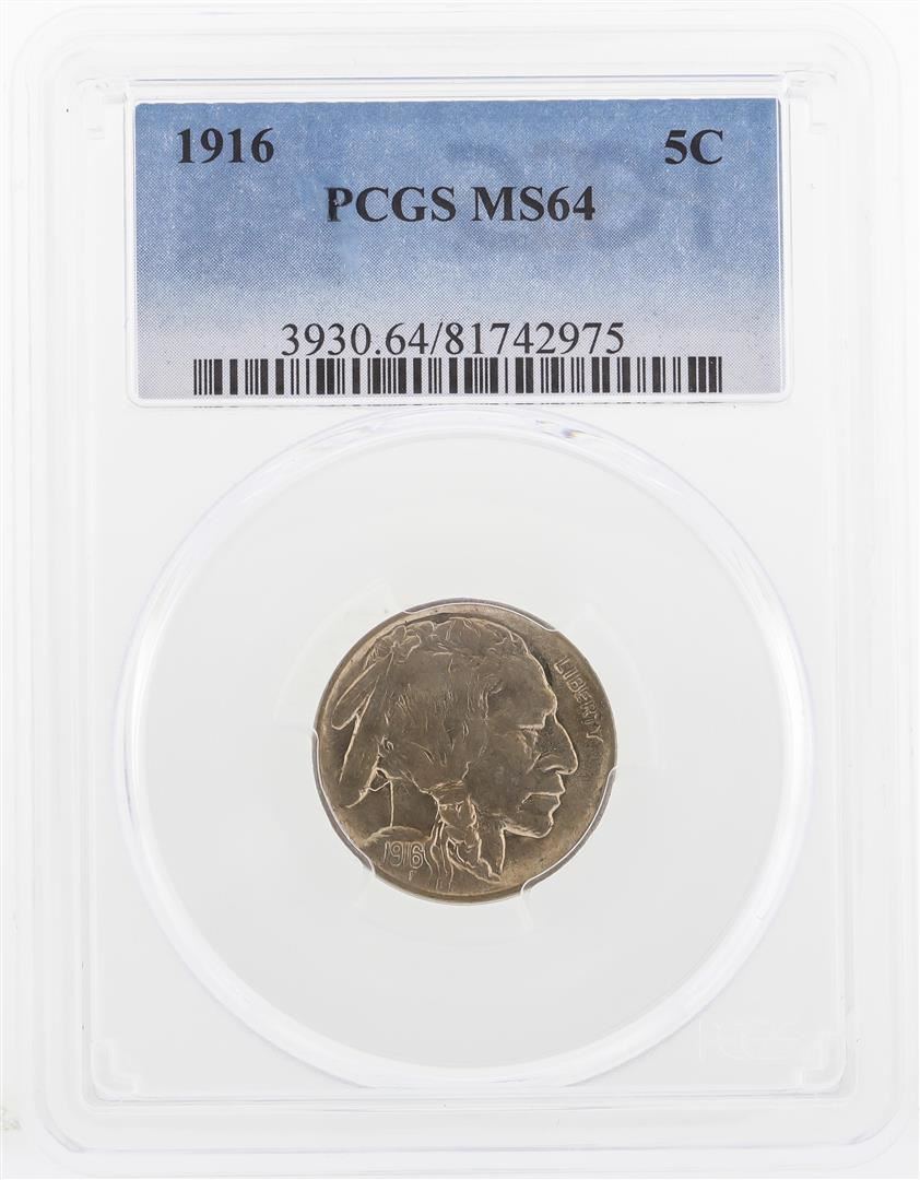 One 1916 Buffalo Nickel Coin PCGS MS64. PCGS Graded.