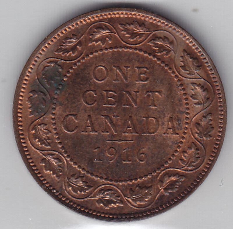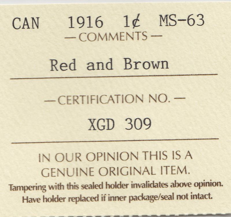 1916 Canadian Large 1-Cent Coin - Graded By ICCS - MS 63 - Red & Brown -- Trends Value $60
