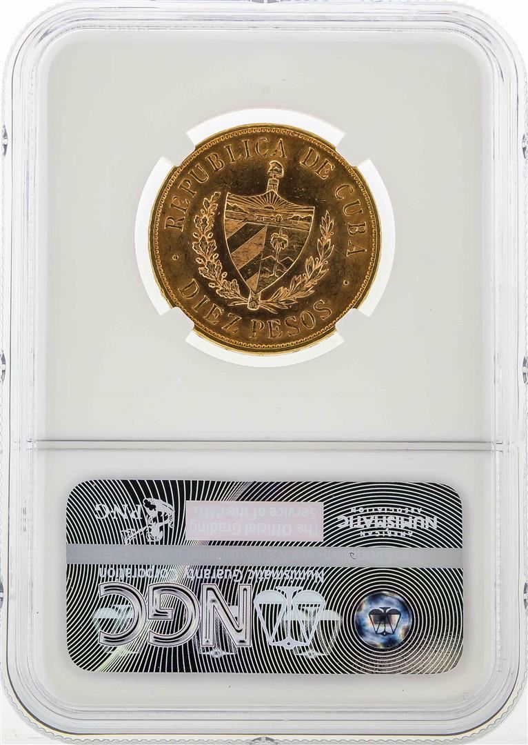 One 1916 Cuba 10 Pesos Gold Coin NGC AU58. NGC Certified.