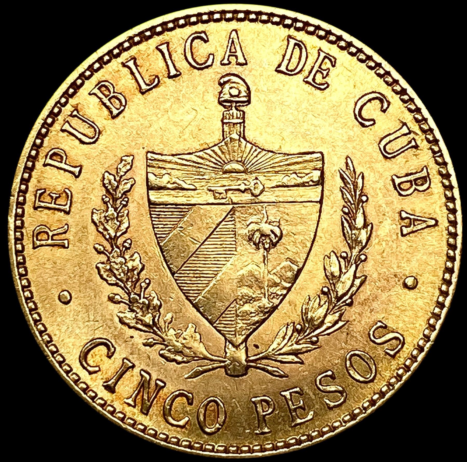 1916 Cuba .2419oz Gold 5 Pesos CLOSELY UNCIRCULATE