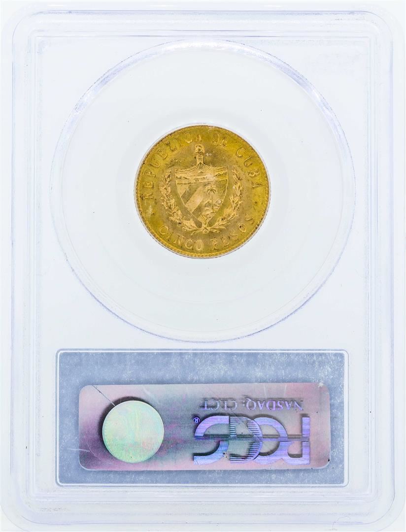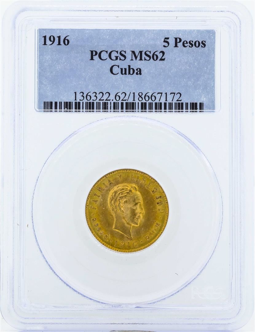 One 1916 Cuba 5 Pesos Gold Coin PCGS MS62. PCGS Graded.