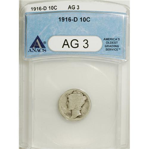 1916-D 10C AG3 ANACS. NGC Census: (454/696). PCGS Popu