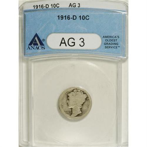 1916-D 10C AG3 ANACS. NGC Census: (462/705). PCGS