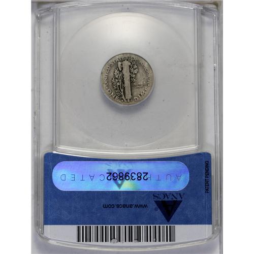 <B>1916-D<10C> AG3 ANACS.</B></I> The letters in the peripheral reverse legends are about half worn into the rim, but the mintmark is obvious, and the date is free from the rim aside from the base of the 6. A tiny reverse rim nick is noted at 9:30.