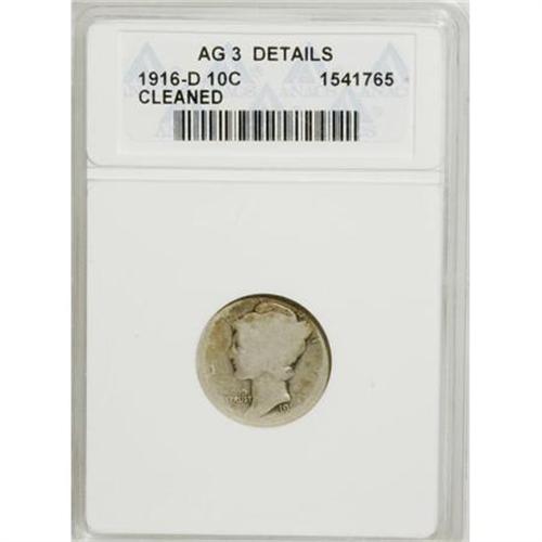 <B>1916-D 10C --Cleaned--ANACS. AG3 Details.</B></I> NGC Census: (480/733). PCGS Population (848/2015). Mintage: 264,000. Numismedia Wsl. Price for NGC/PCGS coin in AG3 : $488. (#4906)<BR><BR><B>Coin Engraver:</B> Adolph A. Weinman<BR><BR><b>Shipping:</b> Coins & Currency (<a target="_blank" href="http://www.heritageauctions.com/common/shipping.php">view shipping information</a>)