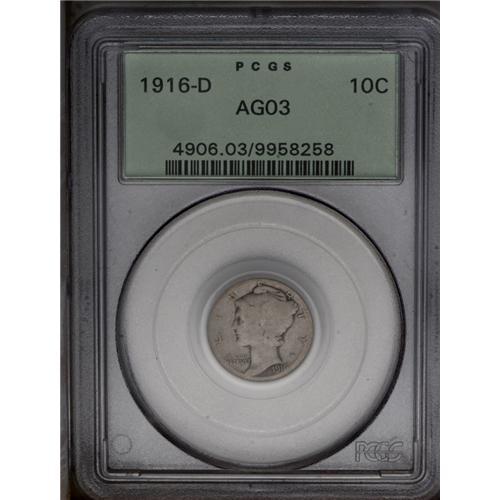 1916-D 10C AG3 PCGS. Each of the letters in UNITED STA 1916-D[10C] AG3 PCGS.