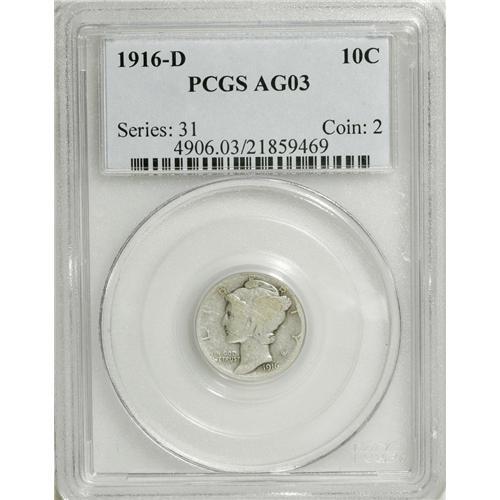1916-D 10C AG3 PCGS. PCGS Population (780/1866). NGC C