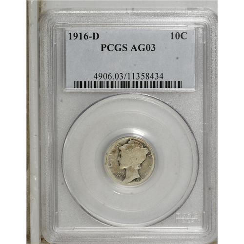 1916-D 10C AG3 PCGS. PCGS Population (780/1866). N