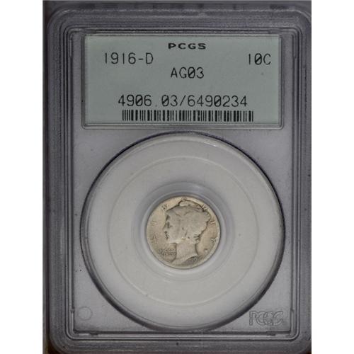 1916-D 10C AG3 PCGS. The date and mintmark are clear, 1916-D[10C] AG3 PCGS.