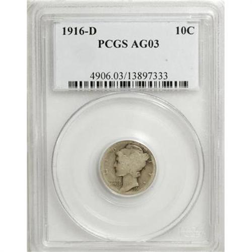 <B>1916-D 10C AG3 PCGS.</B></I> PCGS Population (915/2103). NGC Census: (523/763). Mintage: 264,000. Numismedia Wsl. Price for NGC/PCGS coin in AG3 : $488. (#4906)<BR><BR><B>Coin Engraver:</B> Adolph A. Weinman<BR><BR><b>Shipping:</b> Coins & Currency (<a target="_blank" href="http://www.heritageauctions.com/common/shipping.php">view shipping information</a>)
