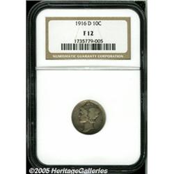1916-D 10C Fine 12 NGC. Evenly worn overall, the