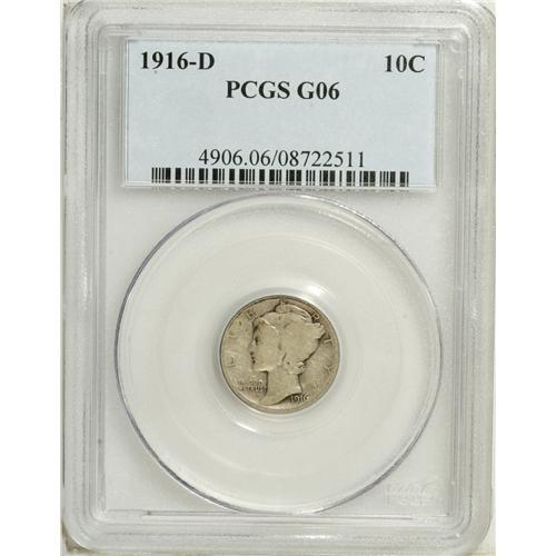 1916-D 10C Good 6 PCGS. A heavily circulated dove-gray