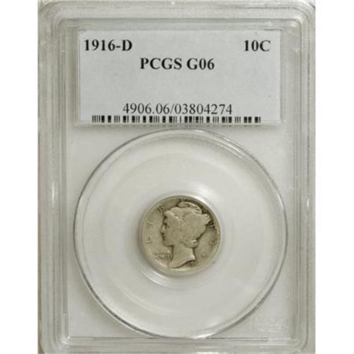 1916-D 10C Good 6 PCGS. Smooth and honestly worn, but