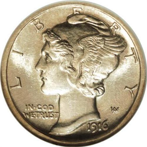 <B>1916-D 10C MS63 Full Bands NGC.</B></I> Nearly every series of U.S. coinage has its key date issue or issues. A key date is the numismatic term for a rarity within a series, as it is the "key" to a complete collection of those coins. In the Mercury dime series, the key issues are the 1916-D, 1921, 1921-D, and the two overdates. Some collectors consider the 1942/1 and 1942/1-D overdates to be integral parts of a set, while others consider the overdates to be minor varieties that are not necessary. Regardless of each individual's viewpoint, the 1916-D is an integral part of the Mercury dime series, required by every collector who desires a complete collection of these coins.<BR> This lovely specimen is fully brilliant with frosty silver luster and excellent design details as indicated by the Full Bands designation assigned by NGC. A few minuscule ticks on each side prevent a higher grade. However, the eye appeal is exceptional.<BR><I>From The Arnold & Harriet Collection.</B></I><BR><BR><B>Coin Engraver:</B> Adolph A. Weinman<BR><BR><b>Shipping:</b> Coins & Currency (<a target="_blank" href="http://www.heritageauctions.com/common/shipping.php">view shipping information</a>\)