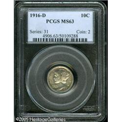 1916-D 10C MS63 PCGS. Lightly toned with subdued,