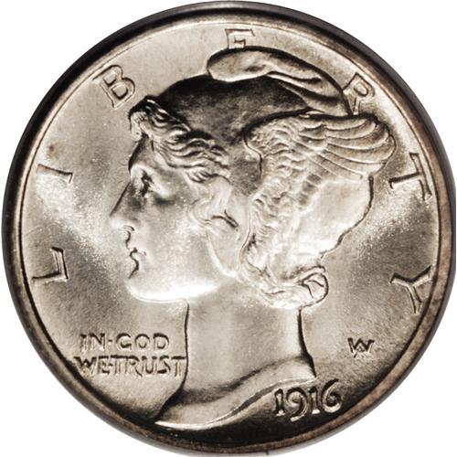 <B>1916-D 10C MS66 Full Bands PCGS.</B></I> This is one of the finest examples of this key date known, and a very desirable specimen. The surfaces are exceptional for a 1916-D Mercury dime, with virtually no handling marks or nicks present. The blast-white surface are bathed in luster and have a couple of minute flecks of peripheral gold on both sides. The strike is absolutely sharp, with fully rounded bands at the center of the reverse and no signs of weakness appear, even under magnification. For identification purposes, a faint line is noted in the field close to the rim, near the L of LIBERTY and between the L and I of that word. Near Liberty's forehead a couple of shadowy leaves are visible from clashing with the reverse die. On the reverse, minor clash marks are present above the motto in the field.<BR> Like the Standing Liberty quarter, the Weinman design for the dime had the key date for its series minted in the first year of issue, 1916. The tiny mintage for the 1916 quarter is tied to a variety of technical delays and mishaps, but what was the reason for the small mintage of dimes at Denver? The answer turns out to be a combination of factors, not the least of which was a fateful production decision by the Superintendent of the Mint. After the extended time required to convert the Weinman designs into dies, the Denver Mint produced only 264,000 pieces before it switched gears and put all its effort behind the manufacture of quarters. The result was an instant rarity, collectors got wind of how elusive the issue was, and the rest is history. Population: 18 in 66 Full Bands, 6 finer (11/06).<BR><BR><b>Shipping:</b> Coin/Currency (<a target="_blank" href="http://www.heritageauctions.com/common/shipping.php">view shipping information</a>)