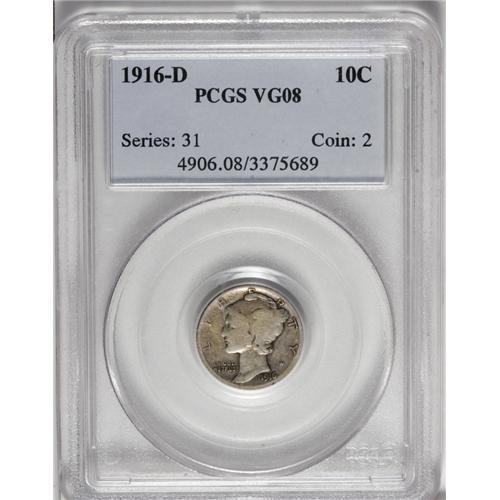 1916-D 10C VG8 PCGS. With just 264,000 pieces minted,