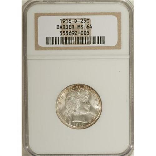 <B>1916-D 25C MS64 NGC.</B></I> NGC Census: (374/213). PCGS Population (391/308). Mintage: 6,540,800. Numismedia Wsl. Price for NGC/PCGS coin in MS64: $460. (#5674)<BR><BR><b>Shipping:</b> Coins & Currency (<a target="_blank" href="http://www.heritageauctions.com/common/shipping.php">view shipping information</a>)
