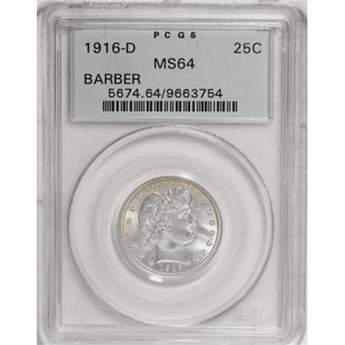 <B>1916-D 25C MS64 PCGS.</B></I> PCGS Population (408/321). NGC Census: (388/214). Mintage: 6,540,800. Numismedia Wsl. Price for NGC/PCGS coin in MS64: $460. (#5674)<BR><BR><B>Coin Engraver:</B> Charles E. Barber<BR><BR><b>Shipping:</b> Coins & Currency (<a target="_blank" href="http://www.heritageauctions.com/common/shipping.php">view shipping information</a>)