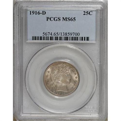 <B>1916-D 25C MS65 PCGS.</B></I> PCGS Population (219/90). NGC Census: (153/62). Mintage: 6,540,800. Numismedia Wsl. Price for NGC/PCGS coin in MS65: $1,025. (#5674)<BR><BR><B>Coin Engraver:</B> Charles E. Barber<BR><BR><b>Shipping:</b> Coins & Currency (<a target="_blank" href="http://www.heritageauctions.com/common/shipping.php">view shipping information</a>\)