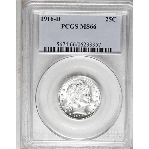 <B>1916-D<25C> MS66 PCGS.</B></I> An essentially untoned and highly lustrous Premium Gem from the final year of issue. Boldly struck with great eye appeal. Population: 75 in 66, 5 finer (7/06).