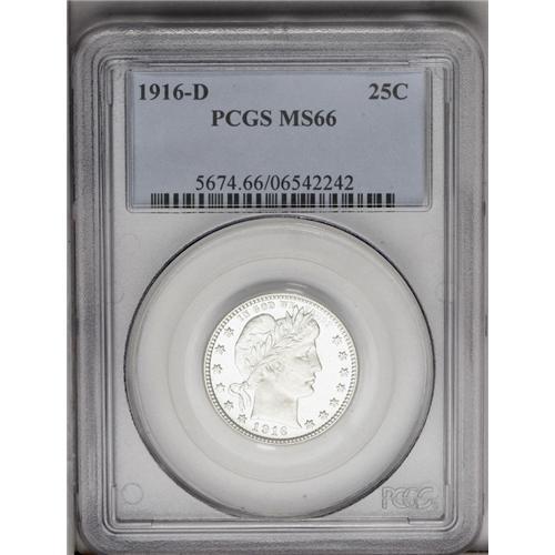<B>1916-D<25C> MS66 PCGS.</B></I> Blazing luster radiates from satiny, untoned surfaces. A few minute marks on the obverse do not distract, and the design elements are sharply impressed, except for weakness on the eagle's left (right facing) claw and the adjacent arrow feathers.
