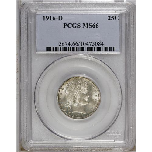 <B>1916-D 25C MS66 PCGS.</B></I> The pale golden patina that appears at the obverse periphery darkens and adds violet, golden-tan, and aqua-green on the reverse. Radiantly lustrous with well-detailed devices. Impeccably cared for on both sides. Population: 77 in 66, 5 finer (11/06).<BR><BR><b>Shipping:</b> Coin/Currency (<a target="_blank" href="http://www.heritageauctions.com/common/shipping.php">view shipping information</a>)