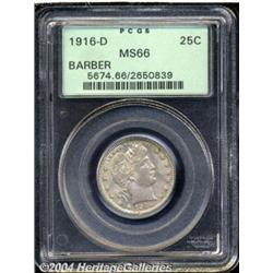 <B>1916-D<25C> MS66 PCGS.</B></I> Lovely mauve-gray color decorates the well struck surfaces of this exemplary piece, which has notable technical merit as well as splendid visual appeal to recommend it. Dappled russet patina is sprinkled throughout, and there is a dark toning spot at the left reverse border, above the T in UNITED. An exquisitely preserved and conditionally scarce premium quality Gem. Population: 60 in 66, 3 finer (8/03).<BR><I>Ex: Long Beach Signature Sale (Heritage, 9/03), lot 6734, which realized $2,875.</B></I><BR><I>From the JFS Collection.</B></I> <BR><BR><B>Important notice:</B> Heritage usually auctions material at the rate of 200-250 lots per hour. On some occasions eBay Live bid software or the Internet may not be able to keep up with the pace of the auction. We recommend placing a realistic absentee bid now as insurance to avoid disappointment. Occasionally the auctioneer may eliminate or reject an eBay Live bid, and the auctioneer may also reopen a lot after the close of the eBay live bidding (usually because we missed an audience bid), and may reject your bid even if it shows you as the winning bidder. By bidding via eBay Live, you agree that Heritage may award the lot to another bidder at its sole discretion under the circumstances described above or any other reasonable circumstances. Since eBay bids are not shown to us until we open the lot on the floor, we treat those bids just like floor bids. In most cases the floor responds before the eBay bid is presented to us, due to Internet lag time, so for consistency we have made it a policy that floor bids are always considered first over tie eBay live bids. Also please note that all Heritage lots purchased through eBay Live carry a 20% Buyer's Premium. Please make sure you read the Terms and Conditions before you bid. </span></font></tr></table></td></tr></table>