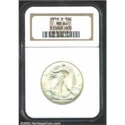 1916-D 50C MS64 NGC. Light dove-gray patina. A lovely near-Gem with pleasing luster and surfaces tha
