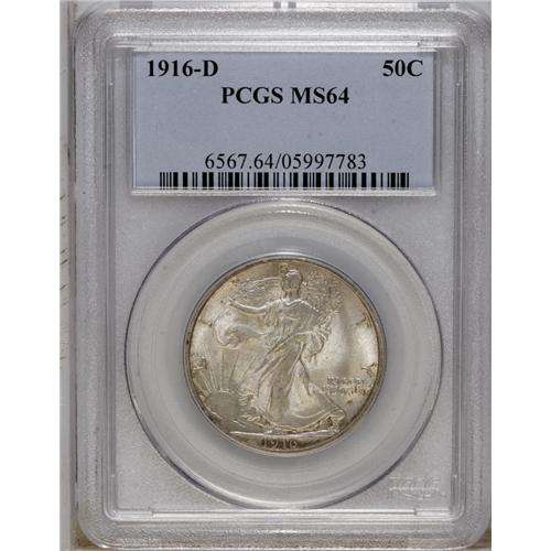 1916-D 50C MS64 PCGS. A nicely struck and satiny silve