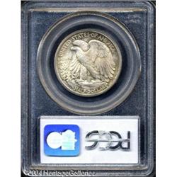 1916-D 50C MS64 PCGS. A popular first-year issue, <B>1916-D 50C MS64 PCGS.</B></I> A popular first-year issue, this example shows the typical satiny surfaces with a variegated overlay of original gold and sienna patination and a hint of attractive blue and olive coloration on the reverse. Interestingly, what seems like a shallow planchet flake (as struck) stands out in right obverse field. <BR><BR><B>Important notice:</B> Heritage usually auctions material at the rate of 200-250 lots per hour. On some occasions eBay Live bid software or the Internet may not be able to keep up with the pace of the auction. We recommend placing a realistic absentee bid now as insurance to avoid disappointment. Occasionally the auctioneer may eliminate or reject an eBay Live bid, and the auctioneer may also reopen a lot after the close of the eBay live bidding (usually because we missed an audience bid), and may reject your bid even if it shows you as the winning bidder. By bidding via eBay Live, you agree that Heritage may award the lot to another bidder at its sole discretion under the circumstances described above or any other reasonable circumstances. Since eBay bids are not shown to us until we open the lot on the floor, we treat those bids just like floor bids. In most cases the floor responds before the eBay bid is presented to us, due to Internet lag time, so for consistency we have made it a policy that floor bids are always considered first over tie eBay live bids. Also please note that all Heritage lots purchased through eBay Live carry a 20% Buyer's Premium. Please make sure you read the Terms and Conditions before you bid. This lot is being auctioned in conjunction with a live floor auction by Heritage Galleries & Auctioneers. All final auction and invoice information will be supplied by Heritage Galleries & Auctioneers, and all other information should be considered preliminary. Lot:6146