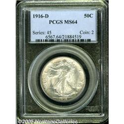<B>1916-D 50C MS64 PCGS.</B></I> Silver-gray surfaces deliver radiant luster. A few minute marks on Liberty's figure preclude a higher grade.