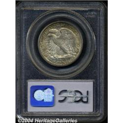 <B>1916-D<50C> MS64 PCGS.</B></I> Mottled russet and antique-golden toning is present particularly around the peripheries on both sides. This near-Gem example displays velvety luster from textured surfaces, good strike detail, and contact marks consistent with the grade. <BR><BR><B>Important notice:</B> Heritage usually auctions material at the rate of 200-250 lots per hour. On some occasions eBay Live bid software or the Internet may not be able to keep up with the pace of the auction. We recommend placing a realistic absentee bid now as insurance to avoid disappointment. Occasionally the auctioneer may eliminate or reject an eBay Live bid, and the auctioneer may also reopen a lot after the close of the eBay live bidding (usually because we missed an audience bid), and may reject your bid even if it shows you as the winning bidder. By bidding via eBay Live, you agree that Heritage may award the lot to another bidder at its sole discretion under the circumstances described above or any other reasonable circumstances. Since eBay bids are not shown to us until we open the lot on the floor, we treat those bids just like floor bids. In most cases the floor responds before the eBay bid is presented to us, due to Internet lag time, so for consistency we have made it a policy that floor bids are always considered first over tie eBay live bids. Also please note that all Heritage lots purchased through eBay Live carry a 20% Buyer's Premium. Please make sure you read the Terms and Conditions before you bid. </span></font></tr></table></td></tr></table>