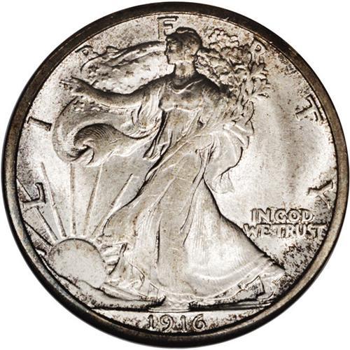 <B>1916-D<50C> MS65 NGC.</B></I> A lustrous and sharply impressed Gem that is both lightly toned and gorgeously preserved. The reverse periphery has a few faint speckles of golden-brown color. One of only four issues in the series that has an obverse mintmark. Worth a close look by the half dollar specialist. Census: 126 in 65, 40 finer (4/06).