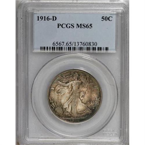 <B>1916-D 50C MS65 PCGS.</B></I> The satiny surfaces of this mintmarked first-year Walker exhibit vibrant patina, predominantly rose and silver-gray with crimson and plum accents. Well struck with excellent visual appeal.<BR><BR><B>Coin Engraver:</B> Adolph A. Weinman<BR><BR><b>Shipping:</b> Coins & Currency (<a target="_blank" href="http://www.heritageauctions.com/common/shipping.php">view shipping information</a>)