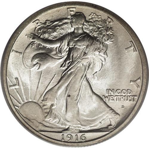 <B>1916-D 50C MS66 PCGS.</B></I> FS-008. The mintmark is repunched southwest. The light tan-gold toning is slightly deeper on the reverse. This lustrous and uncommonly smooth Premium Gem is sharply struck and pleasing. A tiny spot is noted near Liberty's knee. The 1916-D is one of just two dates with an obverse Denver mintmark, and the mintage of 1,014,400 is low by the standards of the series.<BR><BR><b>Shipping:</b> Coins & Currency (<a target="_blank" href="http://www.heritageauctions.com/common/shipping.php">view shipping information</a>)