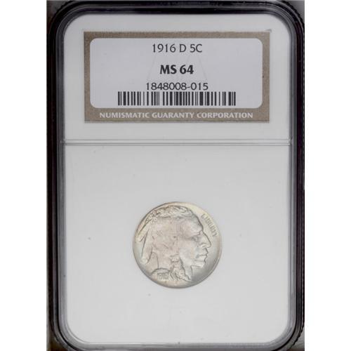 1916-D 5C MS64 NGC. Well struck and lustrous, with wel 1916-D[5C] MS64 NGC.