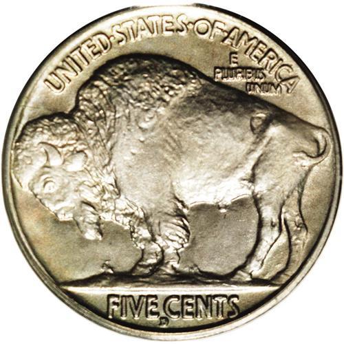<B>1916-D<5C> MS65 PCGS.</B></I> Struck from a worn obverse die, with the frosted mint luster that Lange says is a result. Beautiful, light pastel iridescence is seen over each side. Sharply struck on the reverse, but noticeably weak on the obverse from the worn die used on that side.
