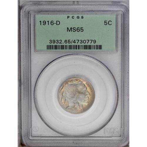 1916-D 5C MS65 PCGS. Struck from a worn obverse die, w 1916-D[5C] MS65 PCGS.