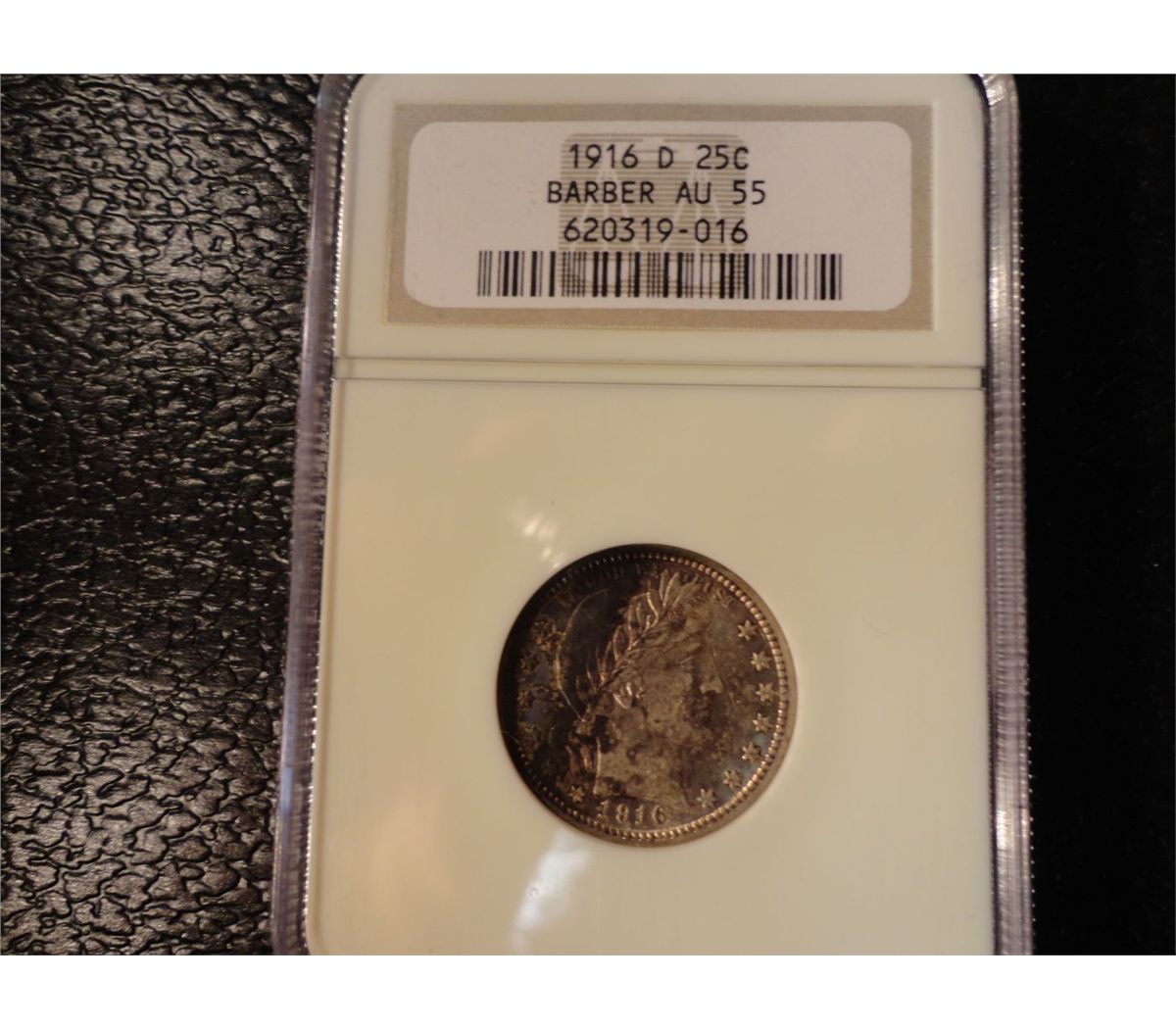 1916-D BARBER QUARTER NGC AU 55 TONED