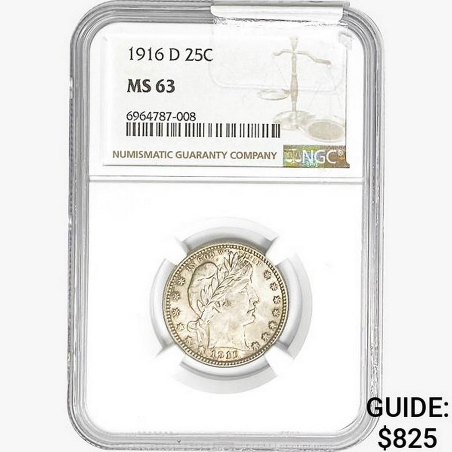 1916-D Barber Quarter NGC MS63