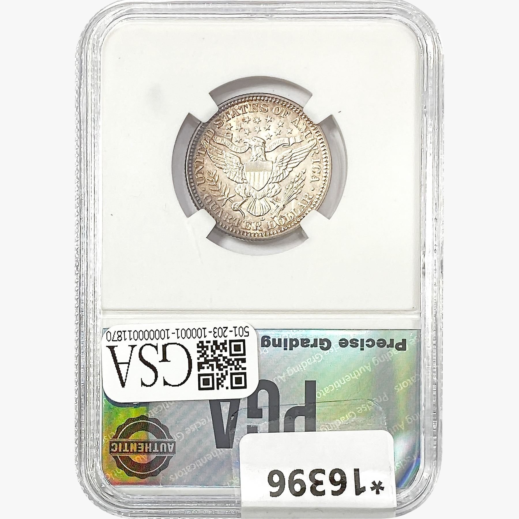 COINS AND CURRENCY LISTED IN GSA’S CATALOG AS GRADED AND ENCAPSULATED BY PCGS, NGC, ANACS, ICG, PCGS CURRENCY, PMG, PCGS BANKNOTE GRADING, CMC OR ANY OTHER THIRD-PARTY GRADING SERVICE ARE LIKEWISE SOLD “AS-IS” EXCEPT AS EXPRESSLY SET FORTH HEREIN. ALL THIRD-PARTY GRADING SERVICE GUARANTEES, INCLUDING AUTHENTICITY, ARE THE SOLE RESPONSIBILITY OF THE THIRD-PARTY GRADING SERVICE AND NOT WARRANTIES OR GUARANTEES OF GSA. BIDDERS SHOULD CONTACT THESE THIRD-PARTY GRADING SERVICES DIRECTLY WITH RESPECT TO ANY CLAIMS OR QUESTIONS THEY MAY HAVE CONCERNING THEIR GUARANTEES AND WARRANTIES. BIDDERS ACKNOWLEDGE AND AGREE THAT AUCTIONEER IS NOT BOUND BY OR LIABLE FOR ANY OPINION OR CERTIFICATION BY ANY THIRD-PARTY GRADING SERVICE. REMOVAL OF A PRODUCT FROM ITS PROTECTIVE CASING OR HOLDER OR ALTERATION OF ANY COIN HOLDER WAIVES ALL RIGHTS CONCERNING THE PRODUCT CONTAINED THEREIN.