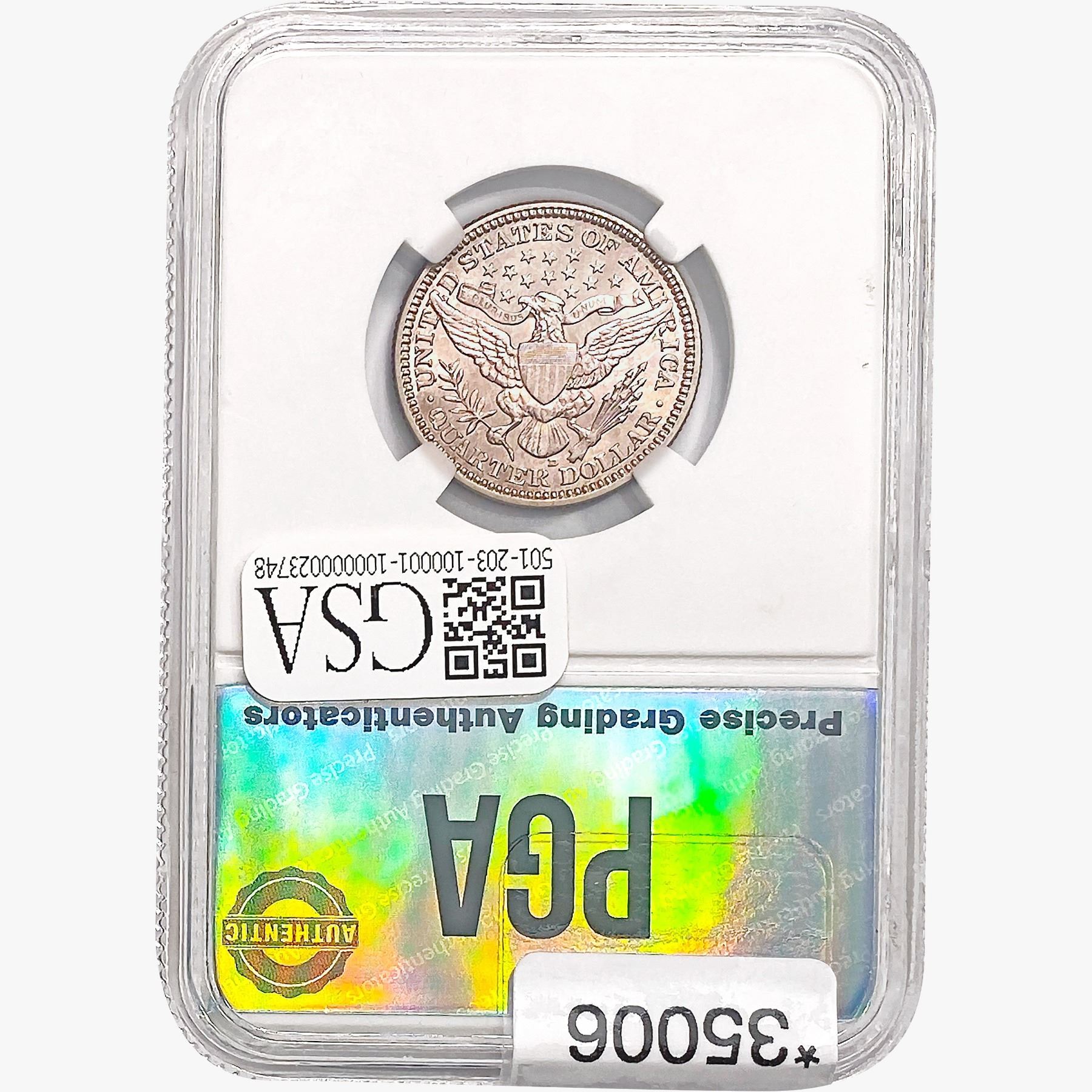 COINS AND CURRENCY LISTED IN GSA’S CATALOG AS GRADED AND ENCAPSULATED BY PCGS, NGC, ANACS, ICG, PCGS CURRENCY, PMG, PCGS BANKNOTE GRADING, CMC OR ANY OTHER THIRD-PARTY GRADING SERVICE ARE LIKEWISE SOLD “AS-IS” EXCEPT AS EXPRESSLY SET FORTH HEREIN. ALL THIRD-PARTY GRADING SERVICE GUARANTEES, INCLUDING AUTHENTICITY, ARE THE SOLE RESPONSIBILITY OF THE THIRD-PARTY GRADING SERVICE AND NOT WARRANTIES OR GUARANTEES OF GSA. BIDDERS SHOULD CONTACT THESE THIRD-PARTY GRADING SERVICES DIRECTLY WITH RESPECT TO ANY CLAIMS OR QUESTIONS THEY MAY HAVE CONCERNING THEIR GUARANTEES AND WARRANTIES. BIDDERS ACKNOWLEDGE AND AGREE THAT AUCTIONEER IS NOT BOUND BY OR LIABLE FOR ANY OPINION OR CERTIFICATION BY ANY THIRD-PARTY GRADING SERVICE. REMOVAL OF A PRODUCT FROM ITS PROTECTIVE CASING OR HOLDER OR ALTERATION OF ANY COIN HOLDER WAIVES ALL RIGHTS CONCERNING THE PRODUCT CONTAINED THEREIN.