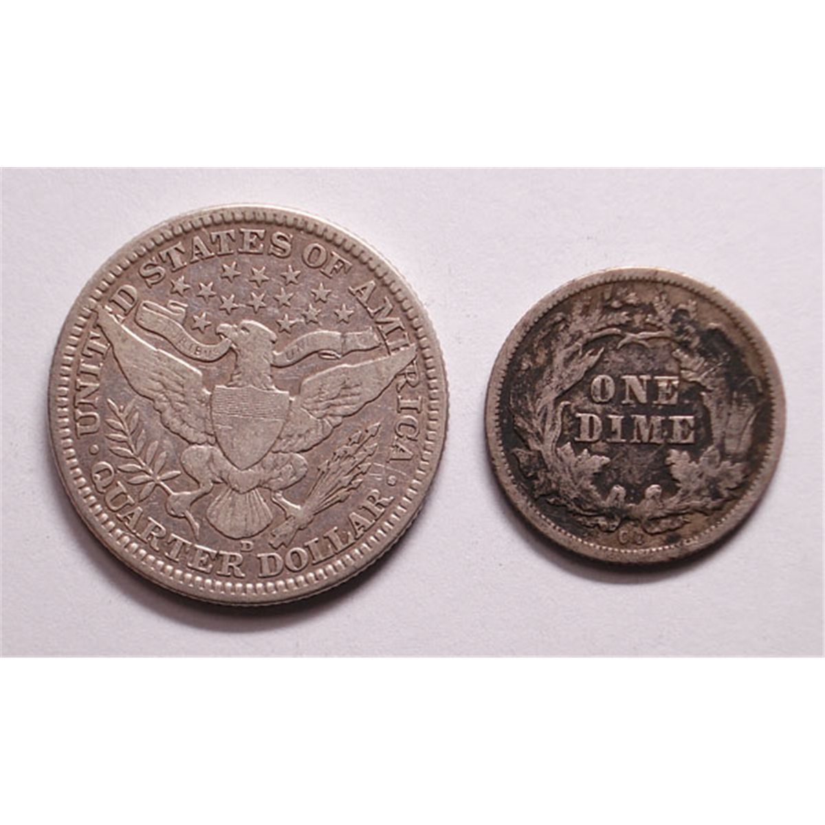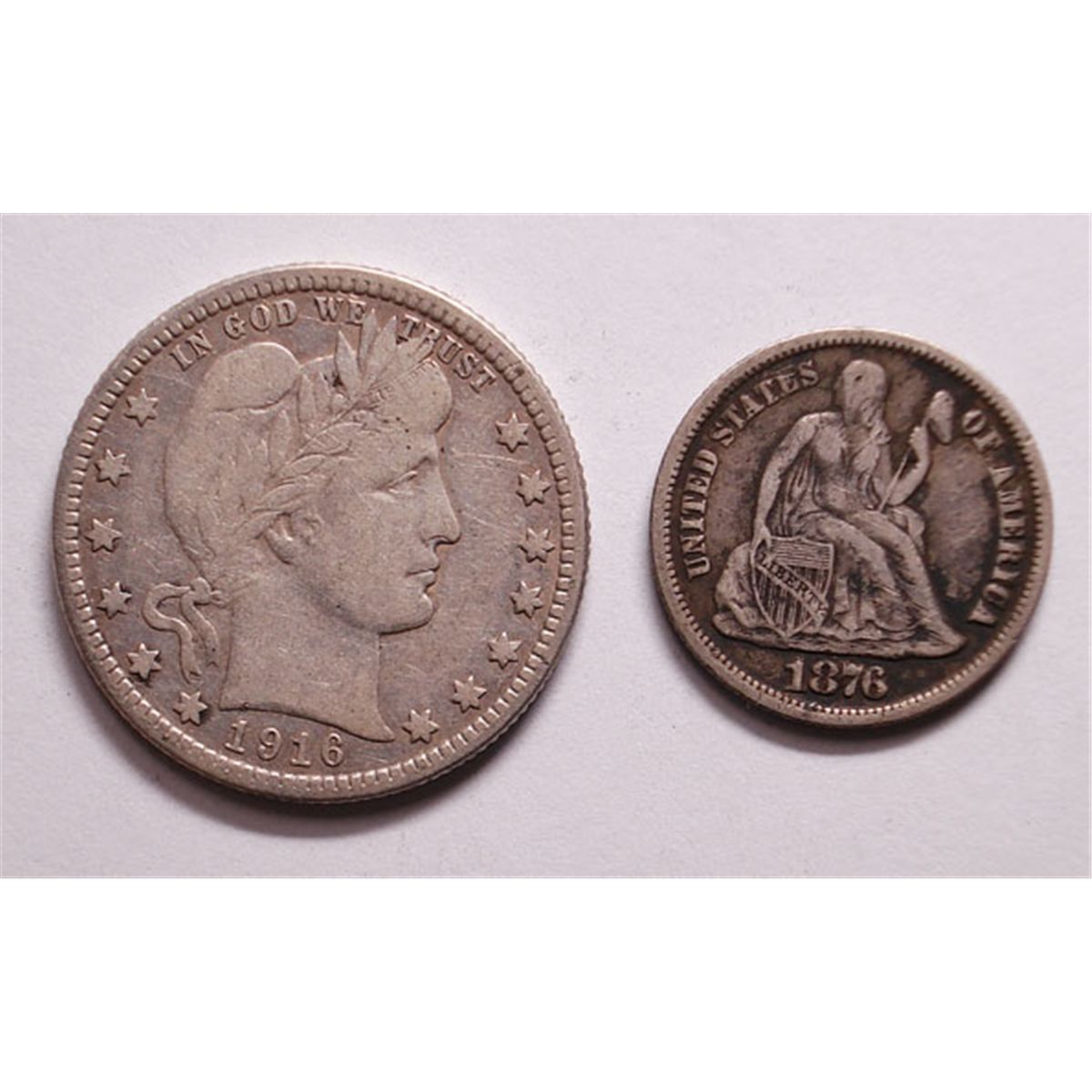1916-D Barber Quarter VF-XF and 1876-CC Seated Dimne F-VF