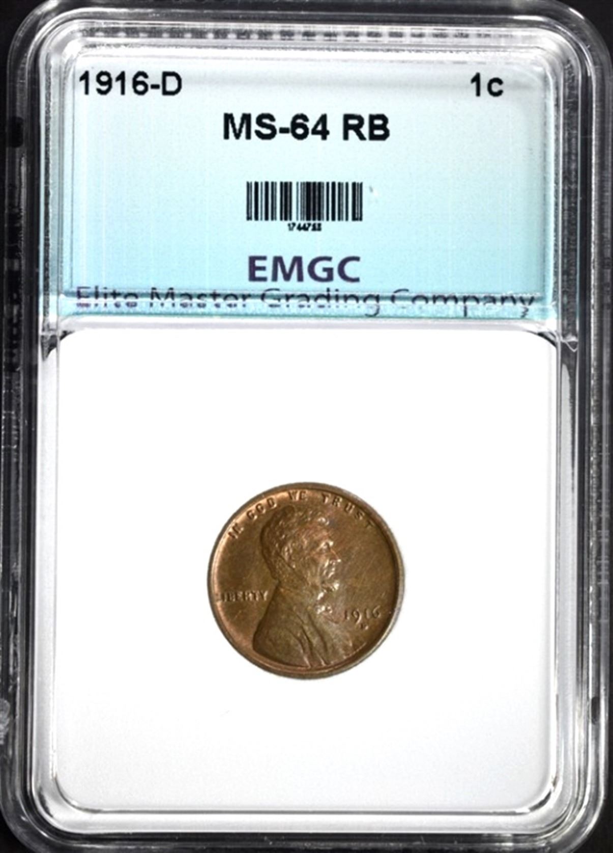 1916-D LINCOLN CENT, EMGC CH/GEM BU RB ESTIMATE $225 - $300.