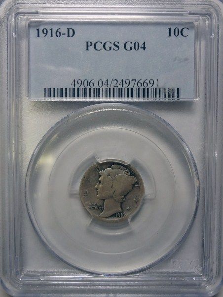1916-D MERCURY DIME PCGS G4, EST. $750.00-$800.00